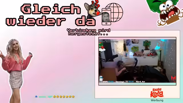 03:33:20Zu Beginn des Streams beschäftigt sich die Streamerin mit alltäglichen Dingen zu Hause. Sie spricht über einen dicken Cardigan, den sie nicht trägt, und äußert Unzufriedenheit mit der Position einer Decke. Ihr Haustier, eine Katze, spielt eine Rolle, da sie immer auf der Fernbedienung liegt. Die Streamerin entwickelt den Gedanken, einen Stream aus einem Einkaufszentrum zu machen, was sie als Geldsklaven-Stream bezeichnet, bei dem ihr Follower ihre Wunschprodukte kaufen sollen. Sie unterhält sich auch über die Notwendigkeit, die Krallen ihrer Katze zu schneiden und äußert sich über bevorstehende soziale Aktivitäten wie das Gehen auf eine Party, wobei sie auf die Spontaneität und den Wunsch eingeht, zu Hause statt auszugehen zu bleiben.
