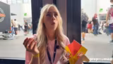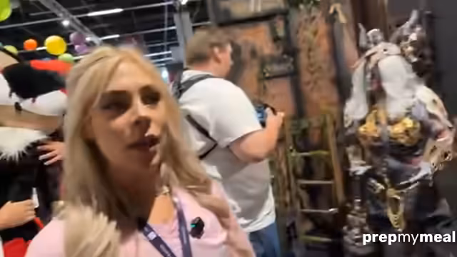 03:14:29Die Streamerin besucht die Merch-Halle der Gamescom, um Geschenke für Geburtstage zu besorgen. Sie sucht gezielt nach bestimmten Artikeln wie Blindboxen, spezielle Kuscheltiere und Waffen. Dabei vergleicht sie Preise verschiedener Stände und stellt fest, dass einige Produkte überteuert sind. Sie trifft auch andere Streamer wie Kim und Lilly.
