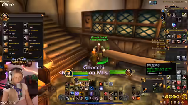 05:53:32Der Streamer und Elo, ein Priester und ein Krieger, beginnen mit dem gemeinsamen Questen in der Südseite von Dunkelküste. Sie konzentrieren sich auf das Töten von Gnollen, um Quest-Items wie die Tasche zu farmen. Der Streamer erklärt den Mechanismus des World Buffs von Booty Bay, der den Bewegungsspeed und die XP-Rate erhöht, und sie hoffen, einen freundlichen Warlock zu finden, der sie hinunterportiert. Während des Questens diskutieren sie über Spielmechaniken wie das Pet-Tanken und die Schwierigkeit der Klassen.