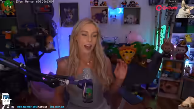 02:38:37Die Interaktion mit der Community steht im Vordergrund. Der Streamer lobt die Unterstützung durch eine 'Franzi', die ihn im Spiel tötete und sich als Traumfrau beschreibt. Gleichzeitig kommt es zu einem privaten Streit mit einer 'Jen', die den Streamer berührt und als Nötigung empfindet. Auch die Erwähnung eines fiktiven Kindes nach einer 'Geburt' und die Verkostung von Gnocchi zeigen die private, absurde Seite des Streams.