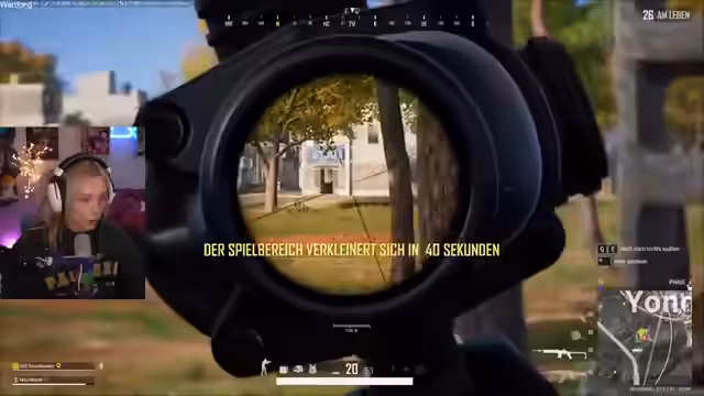 02:55:30Es wird über die Wiederholung eines Spielers diskutiert und spekuliert, ob dieser alleine ist. Die Streamerin erklärt, dass es besser sei, in der Nähe der Zone zu bleiben, um Gegner abzufangen. Sie erklärt das System der Wiederbelebungs-Chips und Hotspots auf der Karte, ähnlich wie in Apex Legends. Ein Buggy wird gesichtet und die Streamerinnen suchen nach einem sicheren Unterschlupf, bevorzugen aber letztendlich den High Ground. Es wird überlegt, sich in die Kämpfe anderer einzumischen, um Kills zu erzielen. Ein Wiederhol-Ding wird entdeckt und die Streamerinnen vermuten, dass jemand versuchen könnte, seinen Mitspieler wiederzubeleben. In einer Bibliothek wird ein geheimer Raum entdeckt, der jedoch keine besonderen Gegenstände enthält. Ein Gegner wird in der Nähe entdeckt und erfolgreich ausgeschaltet. Die Streamerin lobt das gute Teamwork und nimmt einen Kompressor an sich. Es wird über das Looten im Stehen gescherzt und die Streamerinnen begeben sich in die Zone. Sie diskutieren über die Positionierung an den Häusern und den High Ground, um sich einen Vorteil zu verschaffen. Ein Gegner wird am Zonenrand entdeckt und ausgeschaltet, jedoch werden die Streamerinnen kurz darauf von zwei Gegnern überrascht und getötet. Die Streamerin äußert ihren Unmut über das Campen im Wald und bezeichnet die Camper als "Feiglinge". Es wird über den Sonja-Skin im Spiel gesprochen und an eine frühere Runde erinnert, in der sie fast gewonnen haben. Die Streamerin erklärt, dass es einfacher sei, Gegner zu besiegen, wenn man sie zuerst entdeckt. Sie freut sich über einen neuen Follower und entdeckt eine Emote-Stage im Spiel, die jedoch nur für G-Dragon Emotes genutzt werden kann. Es wird überlegt, ob dies die letzte Runde sein soll und ein Dreier-Paket für nächste Woche angekündigt. Die Streamerin erzählt von ihrer bevorstehenden Reise nach Hamburg und den damit verbundenen Schwierigkeiten bei der Anfahrt. Ein Stream-Sniper wird entdeckt und die Streamerin versucht, zu überleben. Sie findet eine M4 und eine Mini, probiert aber auch die SKS aus. Es wird überlegt, welche Waffen und Aufsätze am besten geeignet sind und die Streamerin entscheidet sich für die Ace. Ein Red Dot wird entdeckt und die Streamerin lobt das gute Teamwork. Sie ermutigt ihre Mitspielerin, neue Waffen auszuprobieren und erklärt den Modus Intense Battle Royale. Die Streamerin scherzt über ihr Aussehen im Spiel und vergleicht es mit einem gebräunten Arsch mit Strumpfhose.