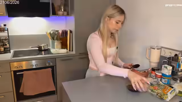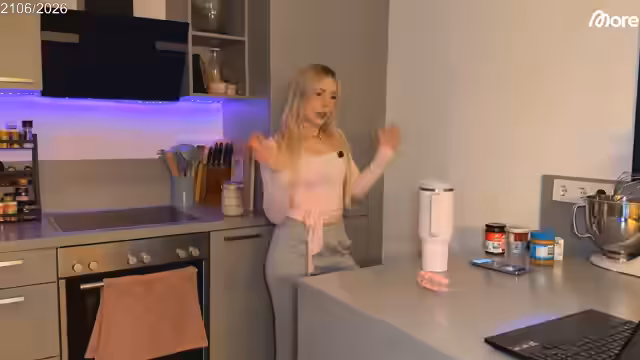 01:38:22Die Streamerin beginnt mit der Vorbereitung ihrer Küche für den Kochstream. Sie hat sich neue Zutaten von einem asiatischen Markt geholt, darunter Instant-Udon-Nudeln, rote Currypaste, kleine Dosen Kokosmilch, Crunchy-Chiliöl, Erdnussbutter und Reispapier. Sie plant, sowohl einen cremigen Erdnuss-Curry-Ramen als auch Sommerrollen zuzubereiten und stellt ihren Nutzern eine zuckerfreie Pfirsich-Limonade mit Ballaststoffen als Empfehlung vor, für die sie einen Rabattcode anbietet.