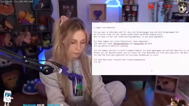 02:43:50Im Rahmen des 'Zwei Lügen, eine Wahrheit'-Spiels tauchen dunkle Kindheitserinnerungen auf. Der Streamer gesteht, als Kind ein 'richtiges Scheißkind' gewesen zu sein, das für viele Kopfschmerzen sorgte. Er schildert mutige und riskante Taten wie Balancieren auf hohen Mauern. Schagges' Enthüllungen sind noch drastischer und umfassen das Verführen eines Kindes in ein fremdes Auto und das Versuchen, ein anderes Kind zum Essen von Hundekacke zu bringen, was zu einem gebrochenen Arm führte.