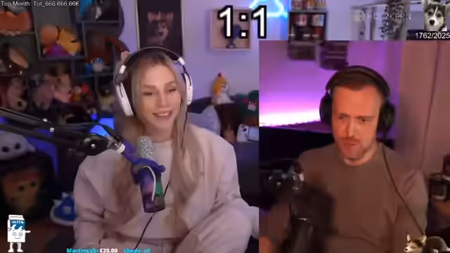 03:58:52Zum Abschluss des Streams wurden interaktive Partyspiele gespielt. Der Höhepunkt war das Spiel 'Flaschen drehen', bei dem Paare aus dem Chat gebildet wurden. Die jeweiligen Paare mussten sich dann je nach Ergebnis küssen oder sich körperlich nahekommen. Dieses Spiel diente als unterhaltsame und unkonventionelle Möglichkeit, den Stream zu beenden und die Community zu einem letzten gemeinsamen, lustigen Erlebnis einzuladen, bevor der Stream offiziell endete.