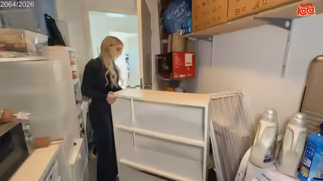 03:00:15Ein Pax-Regal wird grundgereinigt und neu strukturiert. Alte, abgelaufene Konserven wie Thunfisch aus 2021 werden entsorgt. Dafür werden neue Kategorien wie Backsachen (Mehl, Zucker, Kakao) und Asia-Produkte (Ramen, Instant-Nudeln) in das Regal eingeräumt. Der Plan ist, das Regal zukünftig als zentralen Vorratsschrank zu nutzen, um die Küche zu entlasten.