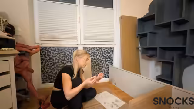 05:57:37Die Streamerin öffnet das zweite Paket und findet direkt das benötigte Bodenteil. Sie räumt die anderen Bretter beiseite, um einen besseren Überblick zu haben und den Papiermüll zu reduzieren. Sie identifiziert Türen und Rückwände und beginnt mit Schritt 7, dem Anbringen des Bodens. Sie schätzt, dass die weiteren Schritte, wie das Anbringen der Beine, relativ einfach sein werden. Sie muss die richtige Ausrichtung des Bodens finden, da dieser Noppen und Löcher hat. Der Weitwinkel der Kamera verzerrt ihre Beine, was sie humorvoll mit Spongebob vergleicht. Sie schafft es, den Boden einzusetzen, bemerkt aber, dass sie fast vergessen hätte, die Schrauben von unten anzubringen. Nach dem Anbringen der sechs großen Schrauben ist der Boden fest und stabil. Sie lobt die Farbe des Schranks, ein Grau mit einem leichten Grünton oder Beige, das sie als schön empfindet und eine Abwechslung zu reinem Weiß darstellt. Sie äußert ihren Unwillen, die Türen anzubringen, da dies oft der schwierigste Teil ist. Sie korrigiert einen Fehler beim Einsetzen der Rückwände, da die Löcher falsch herum waren, und achtet darauf, diesmal alles richtig zu machen. Sie bemerkt, wie eng die Bretter bemessen sind, aber sie passen perfekt. Sie überspringt die Schritte zur Wandbefestigung, da der Schrank nicht an der Wand stehen wird und sie keine Kinder hat, die daran klettern könnten. Sie lobt das neue IKEA-Aufbausystem, das Dübel anstelle von Hämmern für die Rückwand verwendet, und holt ihren Laptop-Akku, da dieser fast leer ist.