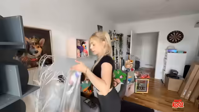 00:33:54Die Streamerin begann mit einer umfassenden Aufräumaktion in ihrem Horrorraum. Sie zeigte ein großes Schneidebrett, das sie im IKEA gekauft hatte und nun dauerhaft in der Küche als Arbeitsfläche nutzen wollte, um ihr einen warmen Holz-Look zu verleihen. Der Plan für den Raum umfasste das Entfernen von Kuscheltieren, die in eine Tüte gepackt wurden, und die Entsorgung eines Raumtrenners sowie eines Schuhschranks auf dem Wertstoffhof. Ein Mini-Kühlschrank sollte beiseitegestellt werden. Sie hatte einen neuen Schrank erworben, der das aktuelle Chaos ersetzen sollte. Sie sortierte auch alte Gegenstände wie eine Teufel Bluetooth Box, die aus einer früheren Kooperation stammte, und eine Lampe aus Japan, die sie behalten wollte. Zudem fand sie eine kleine Kamera, die sie zur Überwachung nutzte, wenn sie nicht zu Hause war, und einen Schutzengel von ihrer Mutter, den sie ebenfalls behielt. Alte Spielsachen aus ihrer Kindheit, wie Puppentheaterfiguren, wurden aufgrund ihres schlechten Zustands entsorgt.