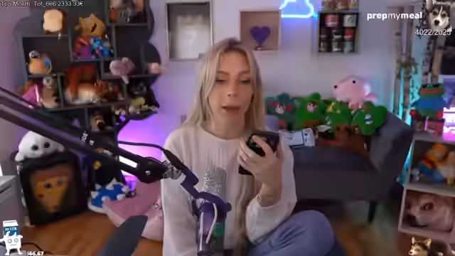 01:23:03Die Streamerin erzählt von ihrem gestrigen Essverhalten, als sie aufgrund von Migräne und Hunger drei Brötchen mit Rohesser aß. Sie plant, sich heute einen Big Mac Wrap zu machen und schwärmt von frischem Brot. Sie erinnert sich an ihre Kindheit, in der sie wegen der Schinkenpizza extra mit nach Tschechien fuhr. Sie spricht über ihre Burger King Zeit und eine spätere Kooperation mit Burger King. Aktuell versucht sie, sich gesünder zu ernähren, zeigt Bilder von einem Chicken Place und überlegt, wann wieder Flohmarkt im Saarland ist. Sie ruft ihre Mutter an, um sich nach dem Flohmarkt zu erkundigen. Die Mutter berichtet von ihren Problemen in der Apotheke und beschwert sich darüber, dass sie kurz vor Ladenschluss nicht mehr bedient wurde, was sie als Verweigerung der gesundheitlichen Versorgung ansieht. Die Streamerin stimmt ihr zu und erzählt von ihren eigenen Erfahrungen mit der Apotheke.