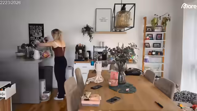 03:21:20Nachdem die Streamerin die Hauptaufgaben des Packens abgeschlossen hat, widmet sie sich den letzten Details wie der Hautpflege, dem Make-up und dem Schmuck für die Reise. Sie erwähnt ihre eingeladene Teilnahme an einem Event in Frankfurt und plant, ihre Schmucksammlung dort mit einem Pandora-Armband zu erweitern. Währenddessen wird der Raum von einem Roboter geputzt, was eine kurze Pause schafft. Den Abschluss des Streams bildet eine Interaktion mit den Hunden, bei der Jocki für Leckerlis Tricks vorführen muss, was das Publikum unterhält. Nach vier intensiven Stunden kündigt sie ihren letzten Stream vor der Abreise an und verabschiedet sich für den Tag.