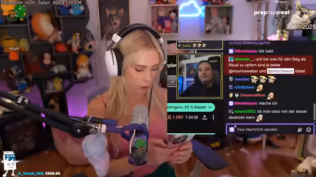 02:06:03Es wird überlegt, wie man das Studio nennen könnte, wobei der Name 'Die Spalte' favorisiert wird. Es wird über Hate im Chat diskutiert, insbesondere im Zusammenhang mit der Toast-Challenge, bei der der Vorwurf des Schummelns aufkam, weil währenddessen getrunken wurde. Es wird eine gemeinsame Spiel-Session mit 'Deadly Days Road Trip', einem Rogue-Life-Spiel, angekündigt. Es wird festgestellt, dass es sich um ein Solo-Game handelt und die Streamerin gerade alleine spielt. Es wird kurz erwähnt, was andere Streamer-Kollegen gerade machen, nämlich Twitch Clips Germany schauen.