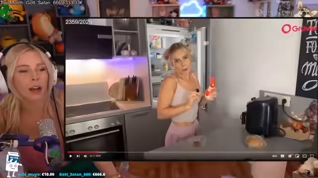 01:59:13Es wird eine Toast-Challenge durchgeführt, bei der es darum geht, eine Scheibe Toast so schnell wie möglich zu essen. Es wird über die richtige Technik diskutiert, ob man währenddessen trinken darf oder nicht. Es folgt ein kleiner Exkurs über Witze, wobei die Qualität der eigenen Witze betont wird und die Reaktion des Chats darauf thematisiert wird. Es wird ein Witz über eine Erdbeere im Rotlichtmilieu gemacht. Es wird überlegt, wie man eine neue Streamerin, Kaddi, in einen kleinen Skandal verwickeln könnte, um ihr zu mehr 'Fell' zu verhelfen. Es wird überlegt, wie man bei Regelverstößen im Stream reagieren sollte, beispielsweise mit einem Timeout.