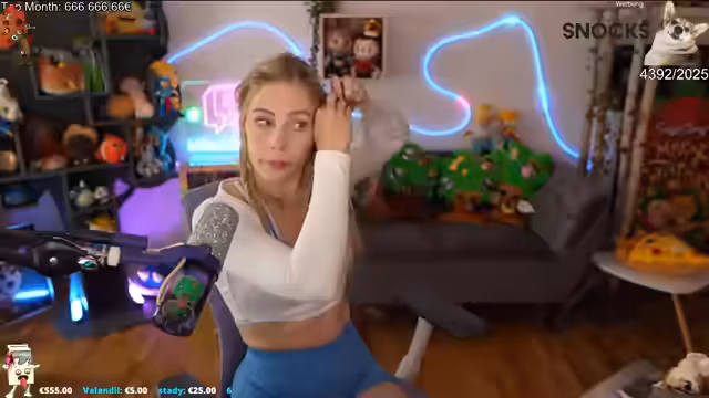 01:38:30Der Stream beginnt mit der Vorbereitung auf das Workout. Es wird die Beleuchtung angepasst und die Streamerin wärmt sich auf, indem sie ihren Körper bewegt. Sie erklärt, dass Aufwärmen auch zur mentalen Vorbereitung dient und dass sie sich normalerweise nicht dehnt, da sie selten Muskelkater hat. Sie erläutert, dass Muskelkater mit regelmäßiger Bewegung verschwindet, da die Muskelfasern sich anpassen. Währenddessen wird die Musik angepasst, um den Fernsehton besser hörbar zu machen. Sie stellt fest, dass Muskelkater kleine Risse in den Muskelfasern sind, die normal sind. Das Aufwärmen beinhaltet verschiedene Übungen wie Armkreisen und Side Lunges, die als Vorbereitung für das bevorstehende Bauch-Workout dienen. Das Aufwärmprogramm ist flexibel und kann an die eigene Geschwindigkeit angepasst werden, wie die Streamerin erklärt.