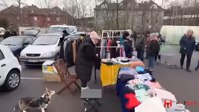 Es wurde ein Flohmarkt aufgemacht, bei dem eine Vielzahl von Kleidungsstücken wie Schuhe, Jacken und Taschen zum Verkauf angeboten wurde. Der Absatz war unerwartet gut, trotzdem wurden hohe Standgebühren von 39 Euro als problematisch empfunden.