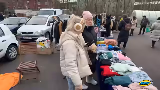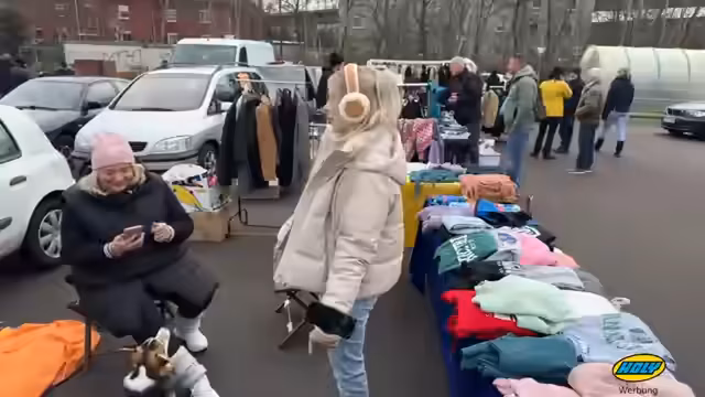 01:48:47Der Flohmarkt ist offiziell seit zwei Minuten geöffnet. Streamer stellt eine Hose für vier Euro zum Verkauf, die ein Käufer für 10 Euro für beide Hosen nimmt. Ein weiteres Kleidungsstück wird für zwei Euro verkauft. Der Verlauf ist langsam, die Streamer denkt, dass die Kälte die Leute abschreckt. Einige Klamotten wie Markensachen gehen schnell, während andere unerwartet verkauft werden.