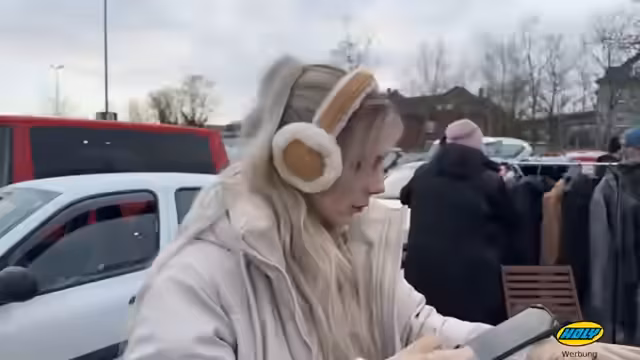 01:53:16Es ist sehr kalt auf dem Flohmarkt, besonders die Füße sind ein Problem. Die Streamer trägt mehrere Schichten und Socken, spürt aber trotzdem kaum Wärme. Der Verkauf ist träge, nach dem ersten Andrang sind die guten Stücke weg. Überlegt geht in das Auto, um sich kurz aufzuwärmen, da die Kälte unerträglich wird. Es werden bereits 49 Euro für die Schuhe eingenommen.