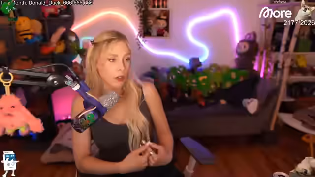 00:18:39Der Stream beginnt mit einer herzlichen Begrüßung der Zuschauer und persönlichen Themen. Streamer ist froh wieder am Rechner zu sein und erwähnt technische Anpassungen. Es werden Outfit-Entscheidungen getroffen und die Katze Gnocchi erwähnt. Die Streamerin erzählt von ihrer sportlichen Aktivität im Gym, Klimmzügen und möglichen Onlyfans-Inhalten. Der Fokus liegt auf dem persönlichen Alltag und den Erlebnissen, ohne Unterstützung oder technische Aspekte zu detaillieren.