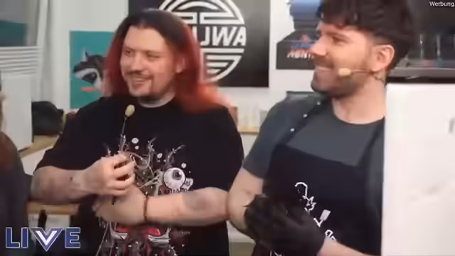 00:41:11Matteo beginnt, Leons Haare Strähne für Strähne mit der vorbereiteten Farbe zu bepinseln. Kim gibt Tipps zur richtigen Technik, wie z.B. das Auftragen der Farbe in dünnen Schichten und das Verwenden der Hand als Unterlage. Es wird überlegt, ob es auch etwas gibt, um graue Haare zu überfärben. Während des Färbeprozesses wird Smalltalk geführt, unter anderem über die Frage, was von öffentlichen Heiratsanträgen zu halten ist. Die Anwesenden sind sich einig, dass Heiratsanträge in Fußballstadien oder ähnlichen öffentlichen Plätzen eher unangenehm sind, da sie die andere Person unter Druck setzen könnten. Ein Heiratsantrag in einem Livestream wird hingegen als legitim empfunden, insbesondere wenn es sich um einen besonderen Event-Stream handelt.