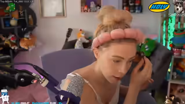 00:22:55Es wird eine kuriose Geschichte erzählt, in der ein Zuschauer über Instagram ein Bild von getragenen grauen Puma-Socken anfragt. Die Streamerin war überrascht, da sie genau diese Socken trug und keine Bilder davon online gestellt hatte. Sie schickte dem Zuschauer ein Bild und erfüllte ihm damit einen Wunsch. Im weiteren Verlauf des Streams wird eine anzügliche Whisper-Nachricht von einem Zuschauer namens Deluxe71 thematisiert. Die Streamerin reagiert scharf auf die Nachricht und beleidigt den Absender, indem sie ihn als Loser bezeichnet und ihm jegliche Chance abspricht, jemals eine Frau wie sie kennenzulernen. Sie blockiert den Zuschauer anschließend. Die Streamerin spricht über den Umgang mit solchen Nachrichten und betont, dass sie sich nicht von solchen Kommentaren beeinflussen lässt. Sie kritisiert das Verhalten des Zuschauers und verteidigt sich gegen die anzügliche Nachricht.