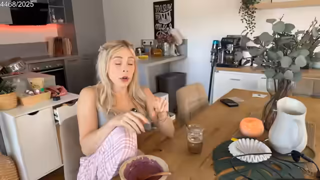 02:58:18Während der Streamerin einen Toast zubereitet und sich über andauerndes Flatulenz beklagt, kocht sie auch ein Spiegelei mit Chorizo-Wurst. Ihr Hund Gnocchi zeigt bei der Futterverteilung Misstrauen. Im Verlauf des Gesprächs mit ihrer Mutter, die sie als jung für ihre drei Kinder hält, erinnert sich die Streamerin an die schwierige Pubertät ihrer Tochter und gibt Tipps zum Umgang mit pubertierenden Kindern.