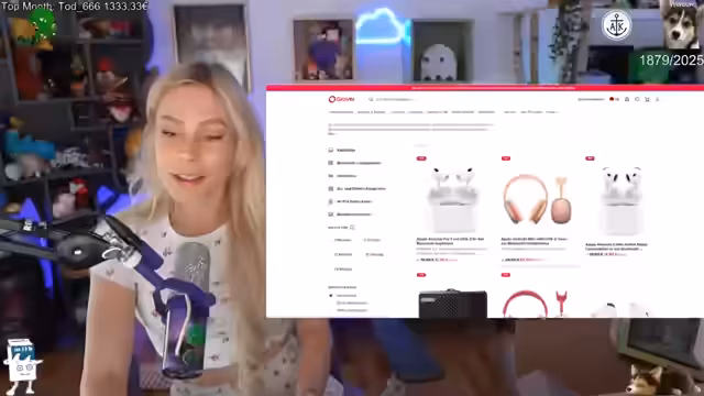 01:21:35Der Streamer stellt eine neue Partnerschaft mit dem Mietdienst Grover vor, bei dem man Technik wie Spiele, Konsolen und Kameras mieten kann. Er zeigt die bestellten Artikel, darunter Ring Fit Adventure und ein Lenkrad, und erklärt die Vorteile des Mietens im Vergleich zum Kauf, wie den Rabattcode MILCHBAUM10. Danach wird kurz eine neue Hose und eine Bluse angeprobiert.