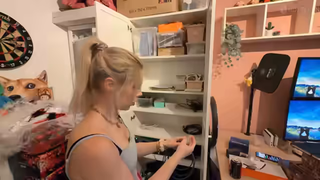 01:00:21Die Aufräumaktion ging weiter mit der Entrümpelung eines Schranks, in dem sich zahlreiche Bastelmaterialien, alte Handyhüllen und ungenutzte Elektronik befanden. Die Streamerin entschied, viele dieser Dinge wegzuwerfen oder für einen Flohmarkt zu sammeln. Besonders hervorzuheben sind die vielen alten Kabel und nicht funktionierenden Geräte, die sich über die Jahre angesammelt hatten. Sie fand auch personalisierte Handyhüllen und andere Gegenstände, die sie für zukünftige Verlosungen oder als Weihnachtsgeschenke in Betracht zog. Die Idee eines Regals für Bastelzeug wurde diskutiert, aber letztendlich entschied sie sich, die meisten ungenutzten Gegenstände zu entsorgen. Die Aktion zeigte, wie viele unnötige Dinge sich im Laufe der Zeit ansammeln und wie befreiend es sein kann, sich davon zu trennen.