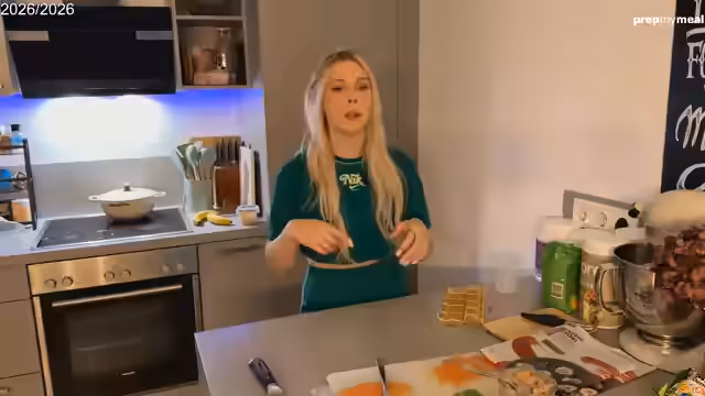 00:49:14Aufgrund ihres Hungers entscheidet sich die Streamerin dafür, selbst zu kochen. Sie überlegt zwischen verschiedenen Optionen wie Sushi, einer Chicken Teriyaki Bowl oder Tacos. Letztlich entscheidet sie sich für Sushi, da es schnell zubereitet werden kann. Sie beginnt mit der Vorbereitung der Zutaten, was das Waschen des Sushi-Reises, den Öffnen von Thunfischdosen und das Schneiden von Avocado umfasst. Dabei stellt sie fest, dass ihr fehlender Wasabi die Mahlzeit etwas beeinträchtigt, und greift stattdessen zu Senf als Alternative.
