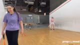08:06:43Nach dem Squash-Spiel analysieren sie ihre Leistung. Sie geben sich gegenseitig konstruktives Feedback zu Stärken und Schwächen, insbesondere bei der Aufschlagtechnik und der Laufleistung. Es wird klar, dass das Spiel für beide anstrengend war, aber viel Spaß gemacht hat.