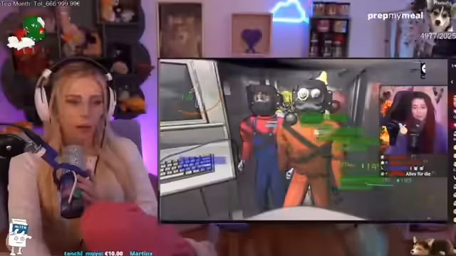 01:33:20Der Streamer und seine Mitstreiter spielen ein Spiel, das durch eine absurde Handlung geprägt ist. Es kommt zu mehreren chaotischen Szenen, wie beispielsweise einem Treffen von Streamerinnen, die wie 'Disney-Prinzessinnen' beschrieben werden, und einem unerwarteten Treffen mit der Streamerin Jen. Das Spiel enthält viele unvorhersehbare Elemente und Interaktionen zwischen den Charakteren.