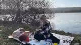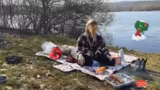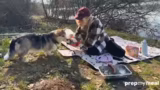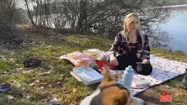 01:21:45Nachdem sie einen Platz gefunden hat, beginnt die Streamerin mit dem Aufschlagen ihres Lagers. Sie breitet die Decke aus, richtet den Grill auf matschigem Grund ein und hängt Gnocchi an eine lange Leine, damit sie die Umgebung sicher erkunden kann. Gnocchi, die zuvor bereits ins Wasser gesprungen ist und nass ist, darf nicht auf die Decke. Die Streamerin macht sich anschließend daran, den Grill mit Mühe anzuzünden und bereitet das mitgebrachte Grillgut wie Rinderspieß, Käse- und rote Wurst vor, während sie gleichzeitig auf die Zubereitung des Essens für sich und einen Leckerli-Snack für Gnocchi achtet.