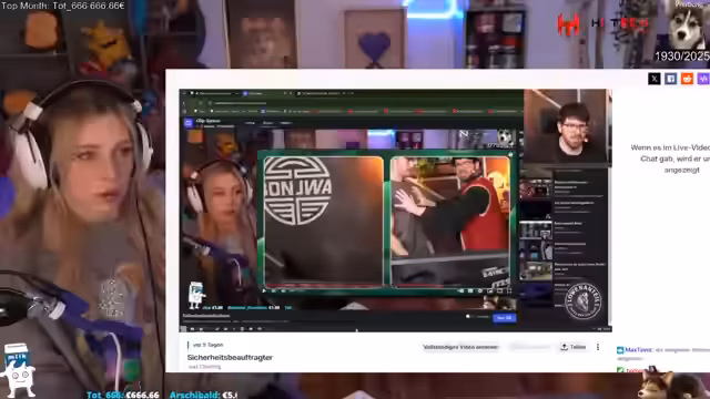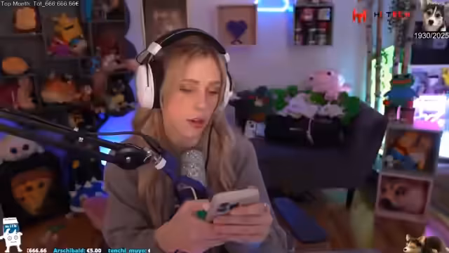 01:13:07Angeblich ist es 'OP-Tag', die Streamerin spricht über ihre aktuelle Nasen-OP und dass sich die Form noch über das Jahr verändern wird. Sie reagierte auf einen Clip von 'Frauentausch' und erzählt von einer internen WhatsApp-Gruppe mit den Streamern Jen und Asta. Sie verriet, dass sie die Gruppe ins Leben rief, um unkompliziert Sonjas Nummer zu bekommen, und kündigte einen Event mit ihr an.