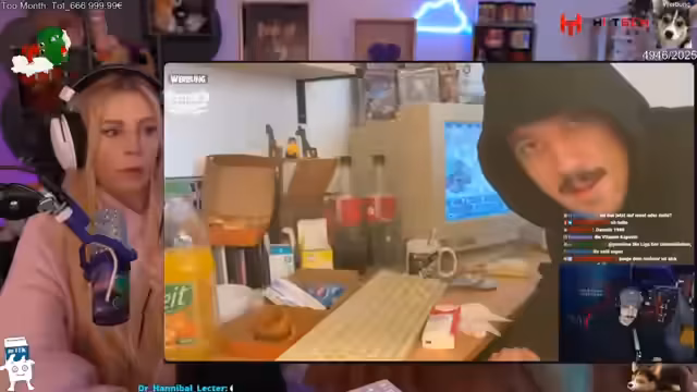 02:43:16Nach fast acht Jahren wird die legendäre Wette zwischen der Streamerin und Matteo beigelegt. Matteo hatte versprochen, bei einem Sieg von ihr, Eis von ihrem Körper zu lecken. Nach jahrelangen Erinnerungen und öffentlichen Tweets als Beweis, schlägt die Stunde der Wahrheit. Vor laufender Kamera und im Beisein von Zeisen nimmt Matteo die Wette an, löst das Eis und führt den Akt, wie versprochen, unter Verwendung eines Kondoms durch, was die gesamte Community schockiert.