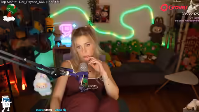 00:21:04Der Stream startet mit einer späten Ankündigung. Die Streamerin erklärt, dass sie durch eine lange Gassirunde mit ihrem Hund Gnocchi den Streambeginn vergessen hatte. Sie zeigt ihre neue Hintergrundbeleuchtung und gibt einen Überblick über ihren Tag, darunter ein erfolgreicher Einkauf bei OAs, um ihren Fit zu erweitern. Sie erwähnt, dass sie Hunger hat und plant, auf ihren Instagram- und TikTok-Accounts aufgetauchtes virales Rezept für einen Backpapier-Döner nachzukochen, wobei sie das Fleisch statt des Broteigs in Backpapier garen wird. Zudem ist sie im Gym gewesen und hat über die Disziplin beim Sport gesprochen, bevor sie ihren Wichtel-Event ankündigt und einen Countdown dafür einblendet.