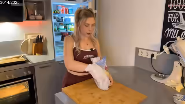 00:59:00Nach technischen Schwierigkeiten mit dem Nightbot und einer kurzen Unterbrechung beginnt die eigentliche Kochaktion. Die Streamerin startet mit der Zubereitung des selbstgemachten Fladenbrots. Sie beschreibt den aufwendigen Prozess des Knetens und Ruhenlassens des Teigs aus Mehl, Wasser, frischer Hefe und Salz, der den ganzen Tag über vorbereitet wurde. Für die typische Optik wird der Teig mit einem Eigelb und Joghurt bestrichen und mit einem Muster versehen. Anschließend wird das Brot im vorgeheizten Ofen gebacken. Während es im Ofen ist, bereitet sie das Gemüse für den Döner vor, indem sie Weißkohl, Gurke und Tomate in eine Schale gibt, um es später zu marinieren.