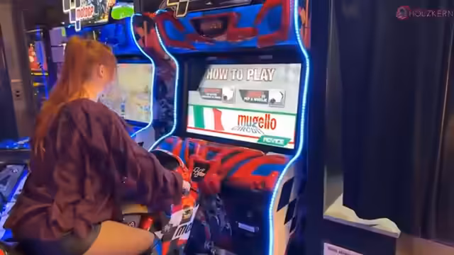 04:01:32Die Streamerinnen bereiten sich auf ein Dance Battle an der Tanzmaschine vor. Es stellt sich heraus, dass die Bedienung des Automaten nicht ganz intuitiv ist und sie versehentlich ein Lied auswählen, ohne die Schwierigkeit eingestellt zu haben. Trotz anfänglicher Schwierigkeiten und der Herausforderung, die schnellen Bewegungen des Spiels zu meistern, liefern sie sich ein spannendes Duell. Nach dem Dance Battle wenden sie sich einem Motorrad-Rennspiel zu. Auch hier gibt es kleinere Probleme mit der Geldeingabe und der Auswahl der Strecke. Sie beschließen, dieselbe Strecke zu fahren und zu sehen, wer die bessere Zeit erzielt. Das Rennen erweist sich als anstrengender als erwartet, mit vielen Stürzen und dem Kampf um die beste Rundenzeit. Trotz der Schwierigkeiten haben sie sichtlich Spaß an der Herausforderung und dem freundschaftlichen Wettkampf.