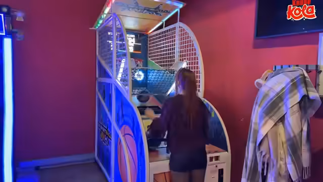 04:22:02Nach dem Motorradrennen entscheiden sich die Streamerinnen für einen Boxautomaten, um zu sehen, wer den stärkeren Schlag hat. Sie nehmen ihre Ringe ab und bereiten sich auf den Wettkampf vor. Die erste Streamerin erzielt einen Wert von 559, während die zweite Streamerin mit 465 Punkten abschneidet, womit die erste Runde an die erste Streamerin geht. Anschließend versuchen sie sich an einem Wurfspiel, bei dem sie Bälle in Körbe werfen müssen. Auch hier gibt es eine kleine Wette, wer besser abschneidet. Die erste Streamerin erzielt 28 Punkte, während die zweite Streamerin zunächst Schwierigkeiten hat, aber dann doch mehr Punkte sammelt. Am Ende steht es 2:2 in der Spielhalle, da ihnen das Geld für weitere Spiele ausgeht. Sie resümieren den Besuch als lustige 'Nebenquest' und freuen sich über die entstandenen Clips.