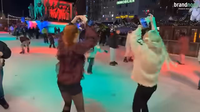 05:29:24Die Streamerinnen zeigen auf dem Eis verschiedene Manöver und Tricks, wobei eine von ihnen ihre Schwierigkeiten beim Bremsen und Stoppen humorvoll hervorhebt. Es wird eine spielerische Atmosphäre geschaffen, in der sie sich gegenseitig herausfordern und ihre Eislaufkünste präsentieren. Währenddessen interagieren sie mit den Zuschauern und kommentieren die Umgebung. Ein besonderer Moment entsteht, als sie einem Kind helfen, dessen Schlittschuhe nicht richtig sitzen, was die soziale und hilfsbereite Seite der Streamerinnen unterstreicht. Die Szene wird von spontanen Kommentaren und humorvollen Einlagen begleitet, die das Publikum unterhalten und zum Mitfiebern anregen.