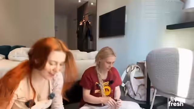 00:43:36Die Streamerin plant gemeinsam mit Kim verschiedene Challenges für ihren Stream in Hamburg. Eine der Herausforderungen besteht darin, dem jeweils anderen ein Outfit auszusuchen und zu bewerten. Sie diskutieren die Details der Challenges und mögliche Strafen für den Verlierer, wie etwa einen Highlights-Antrag bei einem Stream. Dabei gibt es humorvolle Anspielungen und leichte Neckereien zwischen den beiden.