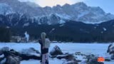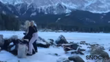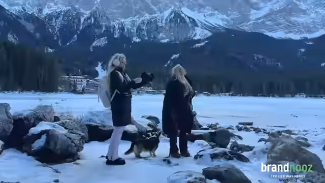02:27:26Die Streamerin und ihr Begleiterin spazieren am Ufer des teilweise vereisten Eibsees. Das Eis ist instabil und es gibt schon Löcher, was als gefährlich eingestuft wird. Der Hund Gnocchi ist aufgeregt und zieht an der Leine. Die Beschaffenheit des Bodens ist eisig und rutschig, besonders ohne festes Schuhwerk. Die Streamerin versucht, den Hund in Schach zu halten und gleichzeitig die atemberaubende Aussicht auf den Berg und das Wasser einzufangen. Die Begeisterung über das winterliche Panorama ist groß.