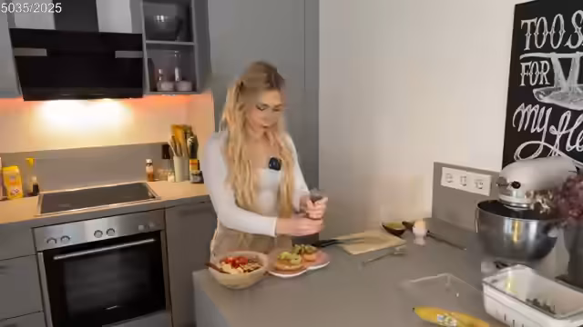 02:06:10Es wird ein Sandwich mit Lachs und Avocado zubereitet, wobei ein Aufback-Baguette verwendet wird. Die Zubereitung des Frühstückseis wird gezeigt und die Küche ist voll mit Geräten. Es wird der Spruch "Work smart, not hard" zitiert. Der Räucherlachs wird als lecker und preiswert gelobt, und es werden Empfehlungen für andere Lachssorten erbeten. Der Skyr-Joghurt wird als kalorienarm und lecker beschrieben, ideal für ein gesundes Frühstück mit Müsli und Obst. Die KitchenAid wurde von einem Zuschauer geschenkt, nachdem im Stream darüber gesprochen wurde. Das Sauerteigbrot wird als das beste Brot bezeichnet, das jemals gegessen wurde, und die Vorfreude auf das Backen mit der KitchenAid wird betont. Die Frühstückszutaten werden auf Le Creuset Geschirr in Herzform angerichtet, ein Geschenk der Schwester.