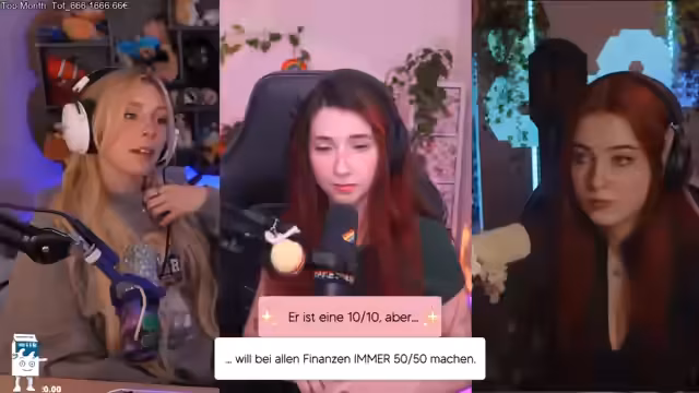 01:40:22Es findet eine intensivere Debatte über die Aufteilung der Finanzen statt. Die Vorstellung, bei allem strikt 50-50 zu teilen, wird von den meisten negativ bewertet. Der Streamer schildert negative persönliche Erfahrungen, in denen sie mehr bezahlt hat und das Geld nicht zurückerhalten hat. Die Teilnehmer diskutieren alternative Modelle wie abwechselndes Bezahlen oder prozentuale Anteile basierend auf dem Einkommen. Großzügigkeit und das Gefühl, eingeladen zu werden, werden als sehr attraktiv eingestuft.