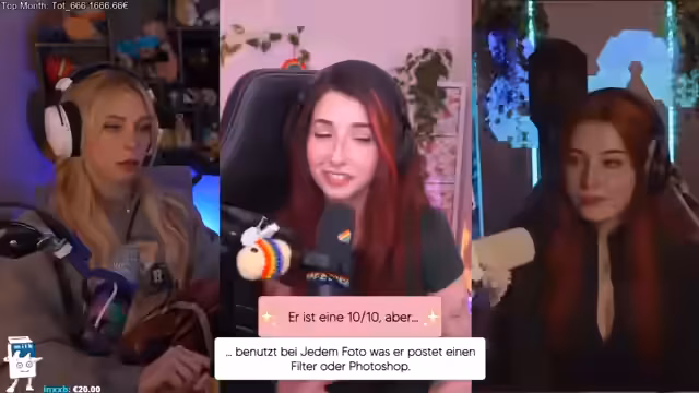 Es wurde über die aktuelle Befindlichkeit, speziell eine gerade ausgeheilte Nasenoperation, und persönliche Erlebnisse mit einer Freundin berichtet. Gleichzeitig wurde die Nominierung in der Kategorie 'Streamerin of the Year' bei einer Preisverleihung bekannt gegeben, die große Begeisterung auslöste. Des Weiteren wurde eine Partnerschaft mit dem Schmuckunternehmen Holzkern beworben.