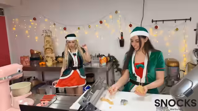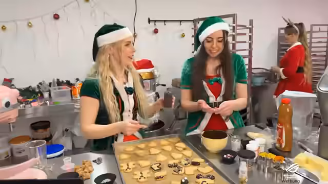 02:27:32Während des Ausstechens der Plätzchen wird der Snickers-Keks aus KittyCatCakes' Sortiment besonders hervorgehoben. Beide Streamerinnen empfehlen den Besuch ihres Online-Shops und betonen die Qualität der Kreationen. Gleichzeitig diskutieren sie über Backmengen – KittyCatCakes verarbeitete allein letzte Woche 14kg Teig für Kipferl.