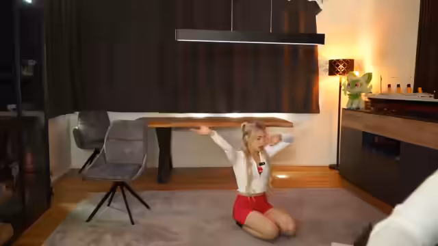 01:31:34Nach dem Frühstück beginnt die Streamerin mit einer Yoga-Session. Sie und ihre Partnerin schlüpfen in Handschuhe und führen verschiedene Yoga-Posen durch. Dabei unterhalten sie sich über die Schwierigkeiten der Übungen und geben gegenseitig Tipps. Die Streamerin erwähnt, dass Yoga für die Verdauung förderlich sei und das allgemeine Wohlbefinden verbessern kann.