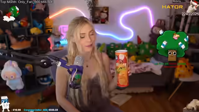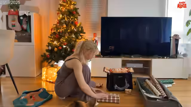02:17:28Die Streamerin schmückt ihren Weihnachtsbaum mit Kugeln, Lichterketten, Zuckerstangen und goldene Tannenzapfen. Sie diskutiert die Platzierung der Dekoration, Probleme mit Kugelhaltern und die Auswahl von rot-goldenen Farbakzenten. Spezielle Kugeln von Ikea und Cupcake-Deko werden integriert, während der Baum schrittweise gestaltet wird. Gegen Ende werden Fake-Geschenke als abschließendes Detail platziert.