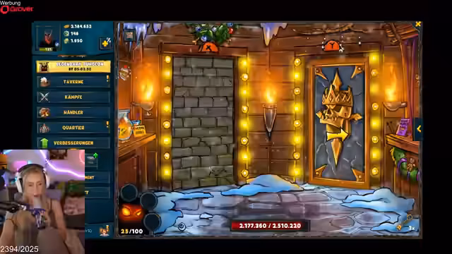 05:08:38Die Streamerin spielt Shakes and Fidget, betritt Legendary Dungeons und nutzt Codes für Belohnungen. Sie erklärt Spielmechaniken wie Tränke, Gilden und den Dungeon-Fortschritt. Strategien für Bosskämpfe und das Entschärfen von Fallen werden diskutiert, bevor sie das Spiel zugunsten eines Gassi-Gangs mit ihrer Katze unterbricht.
