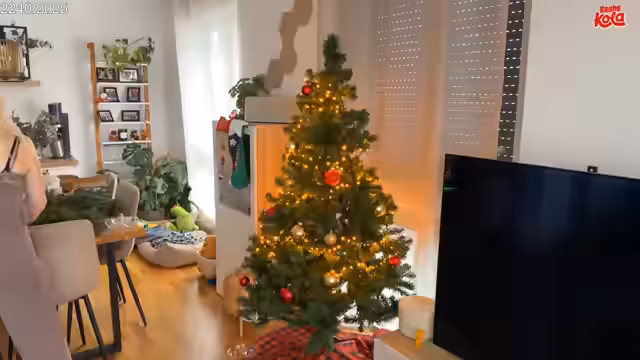 02:06:09Milschbaum baut ihren Plastik-Weihnachtsbaum (3. Nutzungsjahr) live auf und erklärt praktische Vorteile wie Nachhaltigkeit und Kostenersparnis im Vergleich zu echten Bäumen. Sie diskutiert Dekorationsdetails wie das Platzieren des Baumkranzes und die Integration eines Teppichs als Unterlage, während sie mit Chat-Interaktionen zum Thema Weihnachtsbaum-Dauer (bis 6. Januar) scherzt.