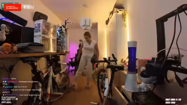 00:58:33Die Streamerin äußert sich kritisch zu negativen Erfahrungen mit Zuschauern, wie dem Versuch, eine Zuschauerin zu küssen oder unter den Rock zu fotografieren. Solche Vorfälle bezeichnet sie als 'krank' und 'Drecksäcke', was ihre Empörung über respektloses Verhalten zeigt. Ein weiteres Thema ist ihr Trinkverhalten: Sie hat kein Durstgefühl und empfindet Trinken als nervig. Um dem entgegenzuwirken, nutzt sie eine große Zwei-Liter-Flasche mit Strohhalm, die sie einmal auffüllt und den ganzen Tag bei sich trägt. Sie erklärt, dass sie kleinere Gefäße nicht wieder auffüllen würde, was ihre Strategie zur ausreichenden Flüssigkeitszufuhr verdeutlicht.