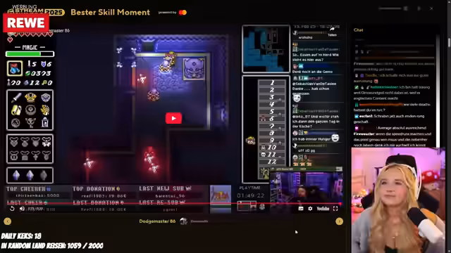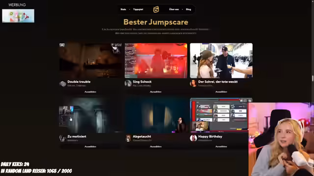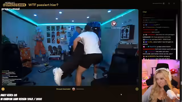 00:53:20Die Streamerin stellt verschiedene Kategorien der Stream Awards vor und zeigt Clips aus diesen Kategorien. Sie ist besonders begeistert von der Kategorie "Bester Rage-Moment" und zeigt einige humoristische Clips. Sie äußert sich auch zu anderen Kategorien wie "Beste IRL-Momente" und zeigt Beispiele dafür.