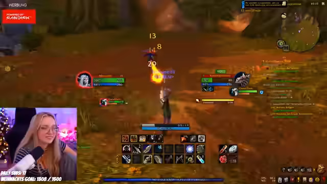 01:18:08Im Spiel wird intensiv weitergegrindet: Monsterbekämpfung, das Füttern des Tieres und das Sammeln von Ressourcen stehen im Vordergrund. Der Streamer reagiert auf einen Hype Train im Chat und bedankt sich für den Support, während er gleichzeitig technische Aspekte wie Tränken-Nachfüllzeiten koordiniert. Die Session wird als entspannte Fortsetzung der WoW-Fokusphase beschrieben, bei der Quests strukturiert abgearbeitet werden, während die Interaktion mit der Community aufrechterhalten wird.