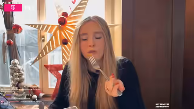 03:12:11Der Streamer leidet sichtlich unter ihrer extremen Vergesslichkeit, was sie mehrmals erwähnt. Sie vergisst wichtige Gegenstände wie ihre Kabel und ihr Handy und bereut ihre heutige Leistung. Um sich etwas zu gönnen, besucht sie ihr Lieblingsrestaurant, wo sie ein Cordon Bleu bestellt. Während des Essens spricht sie über ihre Vorlieben für bestimmte Gerichte und kritisiert insbesondere das typische Münchner Dönerbrot. Gleichzeitig plant sie aufgrund eines bevorstehenden Schneesturms eine große Lebensmittelbestellung und ist dabei verunsichert.